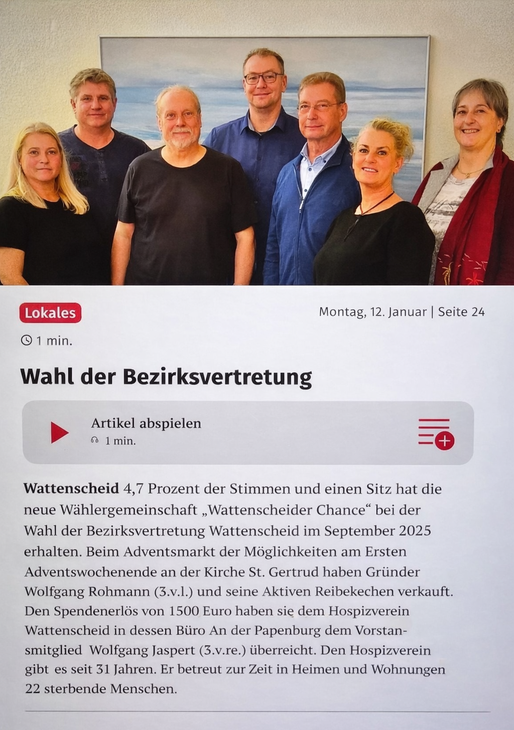 Wahl der Bezirksvertretung – Spende für Hospizverein